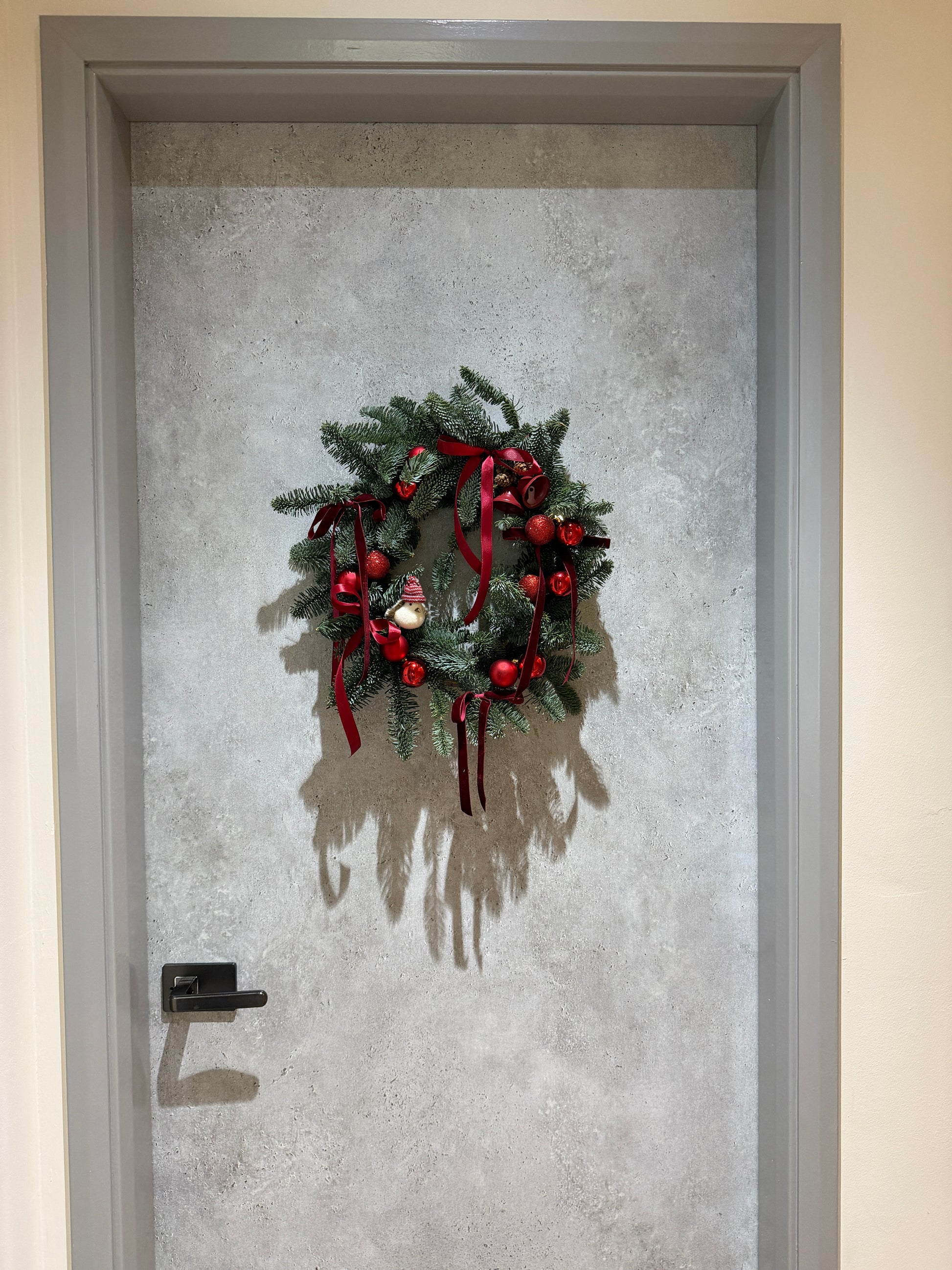 This year’s design embraces simplicity and warmth — a timeless Christmas wreath crafted with fresh fir, adorned with rich red ornaments, velvet ribbons, and a touch of cheer from our cozy little winter bird. Perfect for welcoming the festive season with elegance and ease, even amidst the year-end bustle.